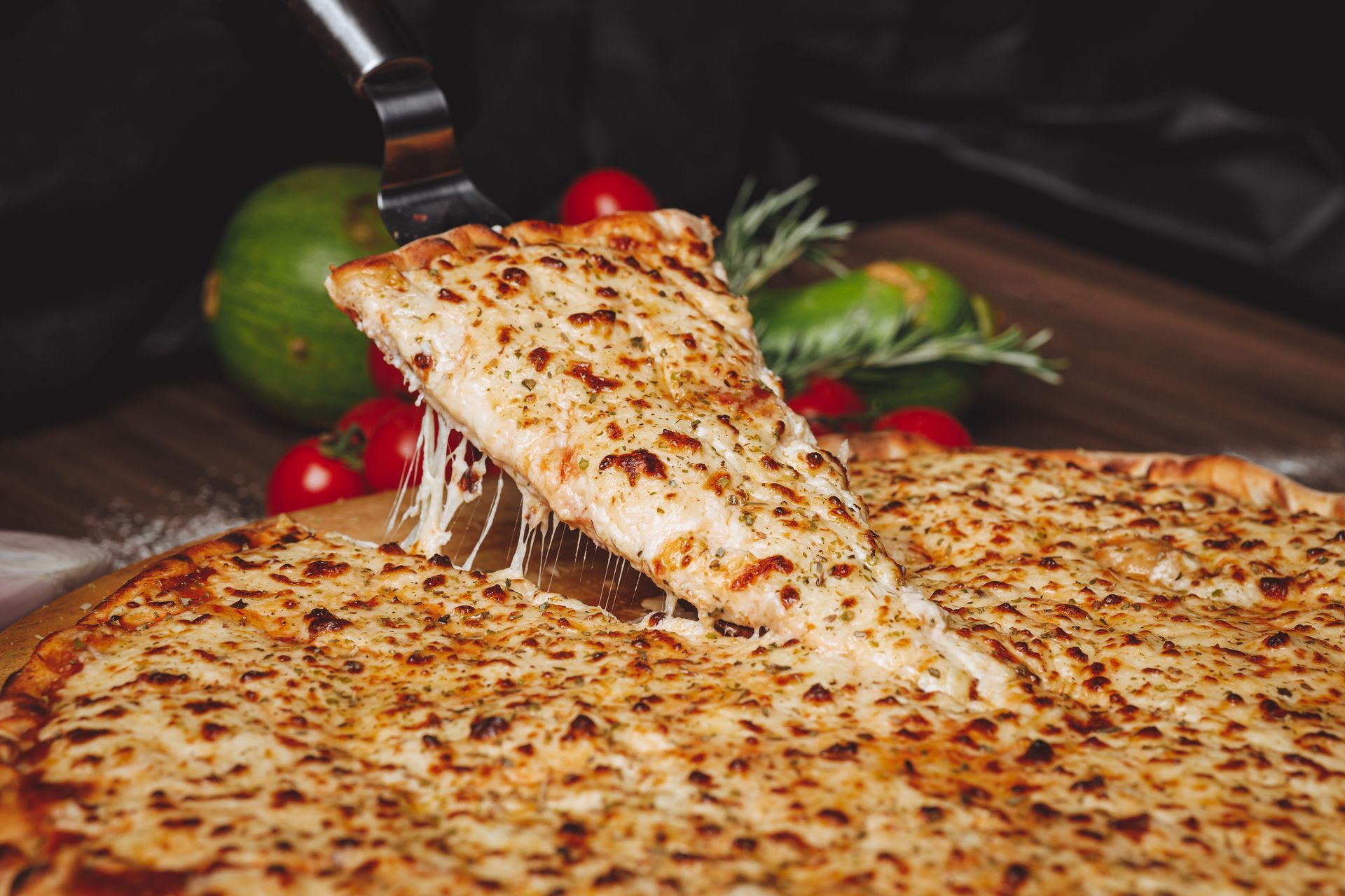 Molho de tomate, mussarela, orégano, azeitona, azeite e alho frito.
